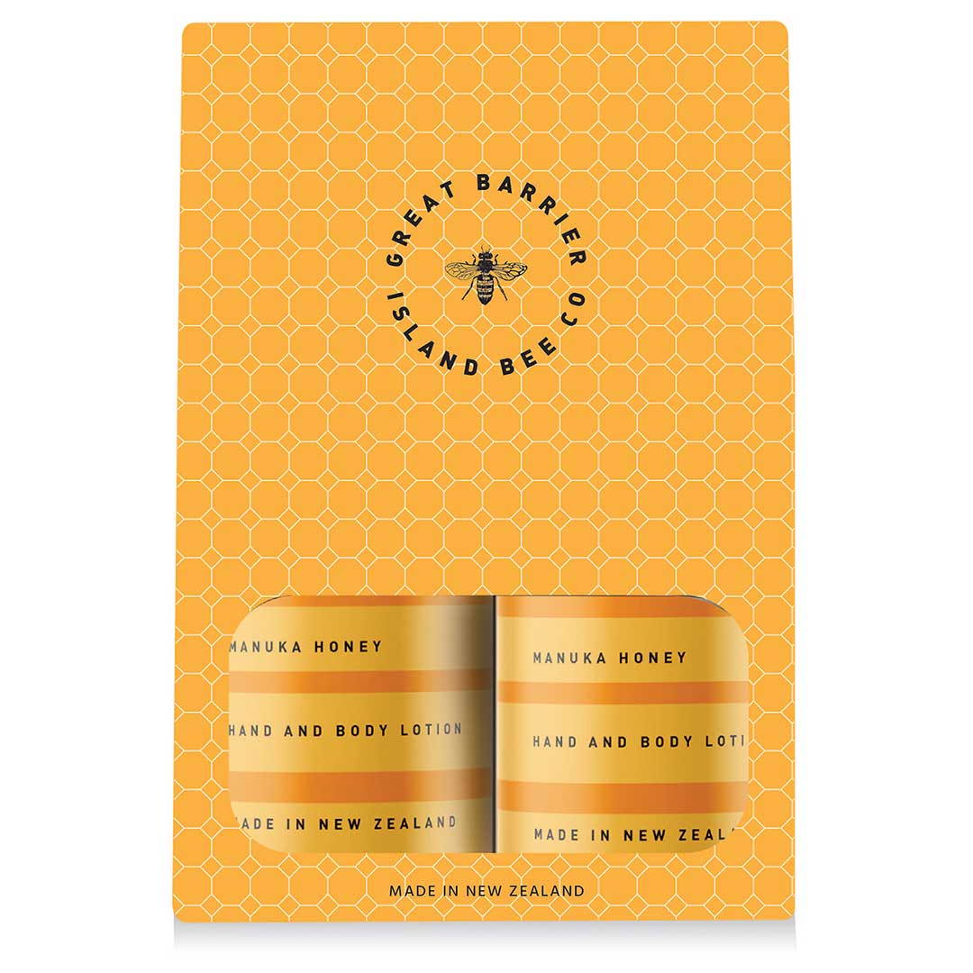 A beautiful gift box featuring Great Barrier Island manuka honey Hand & Body lotion 300ml pump and Great Barrier Island manuka honey Bath & Shower Gel 300ml pump.