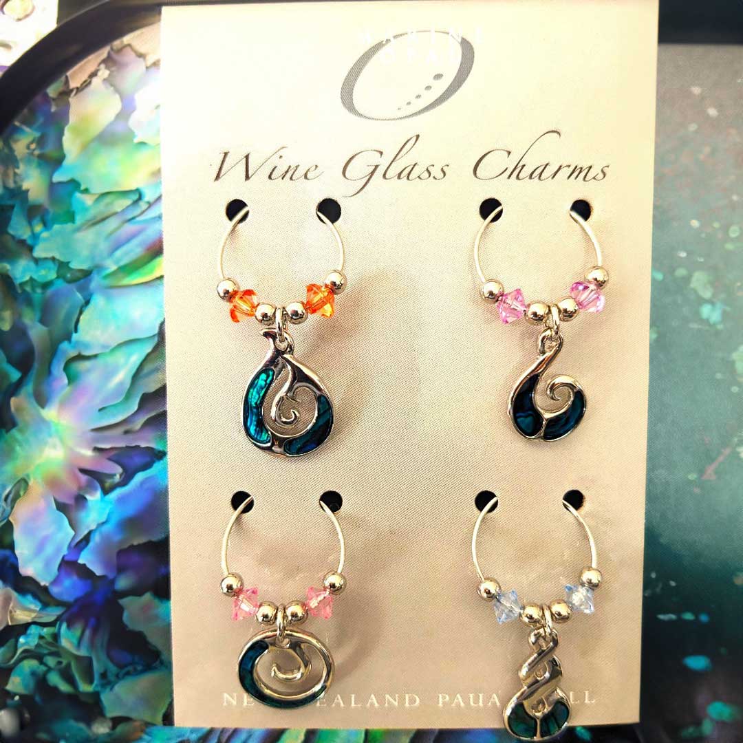 New Zealand Paua Shell Wine Glass Charms - Set of 4